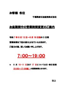 スタンドお盆営業ご案内